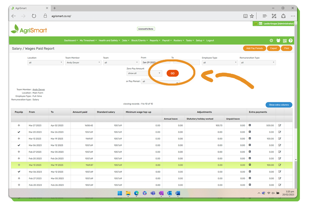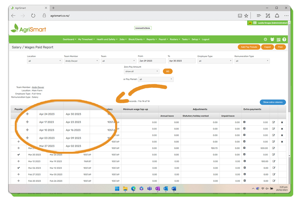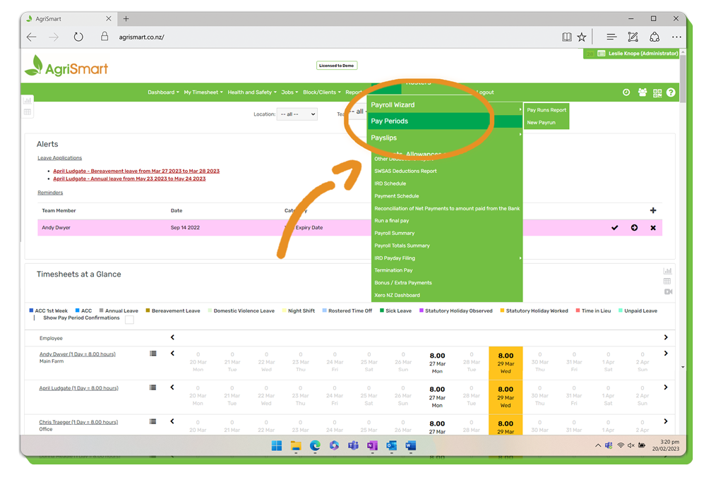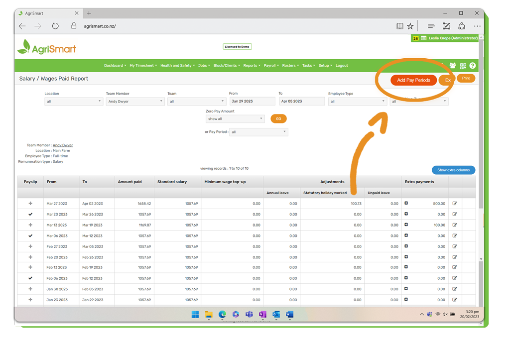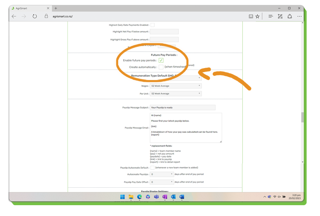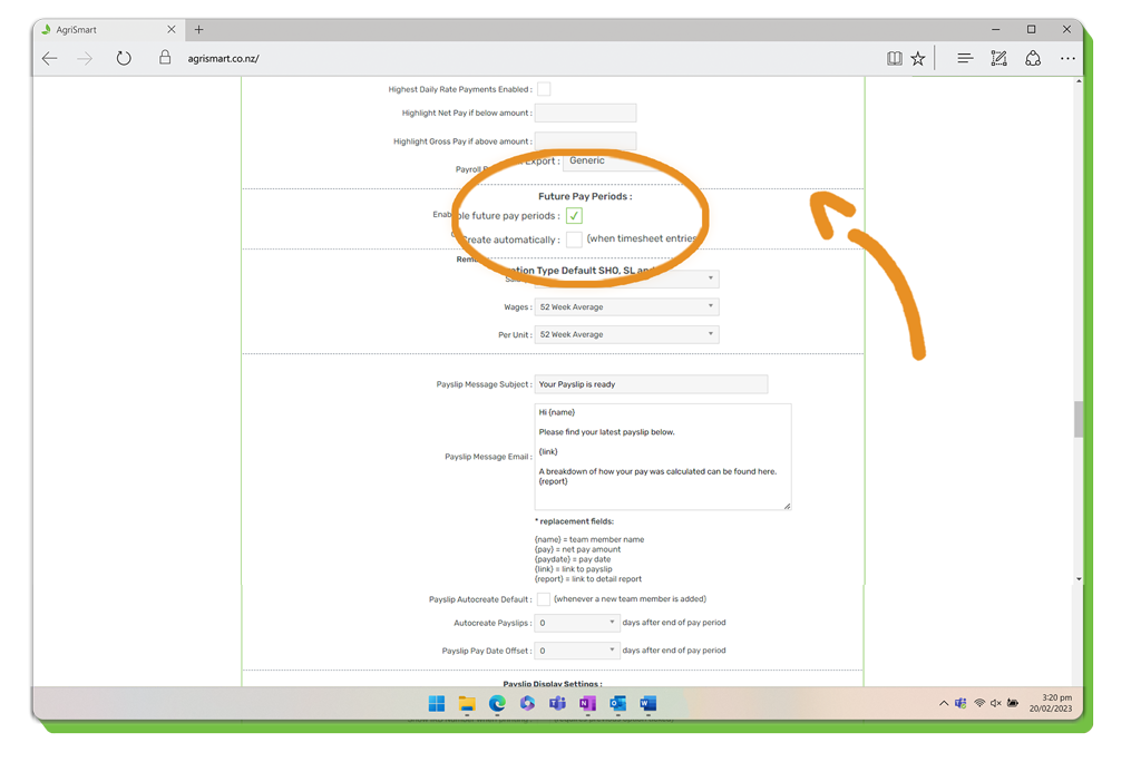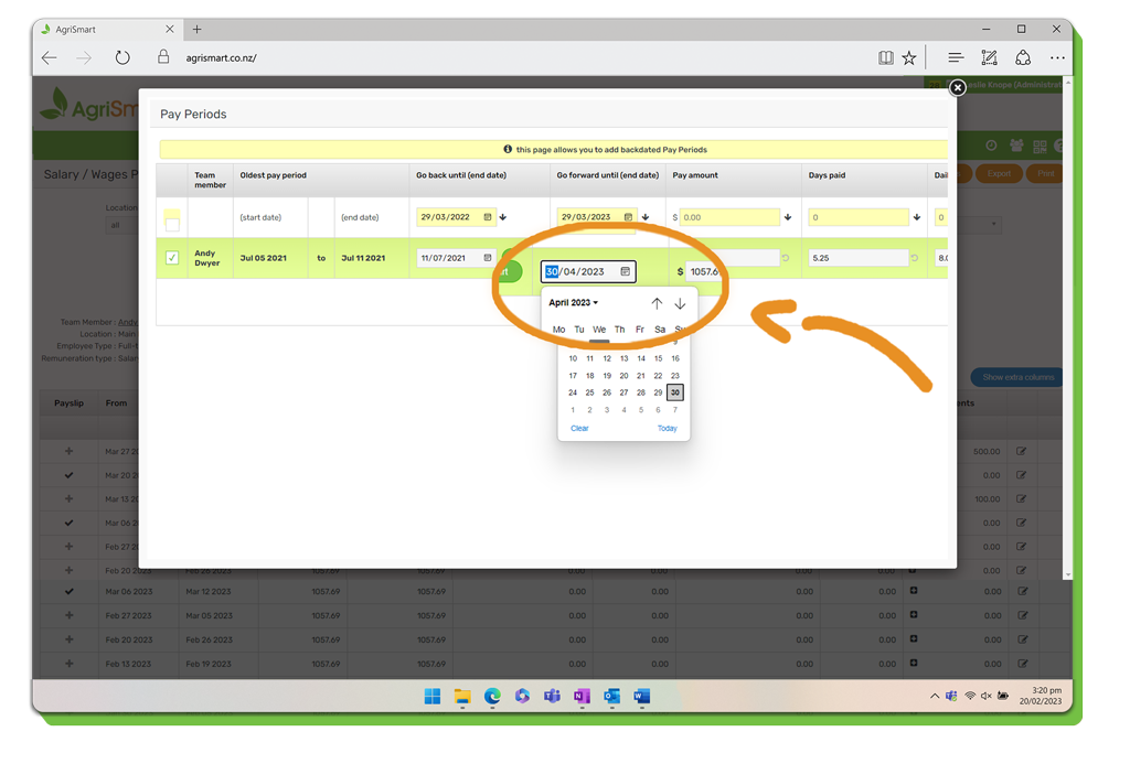 9. Enter the date you want the future pay periods to create up until e.g. 30/04/2023: