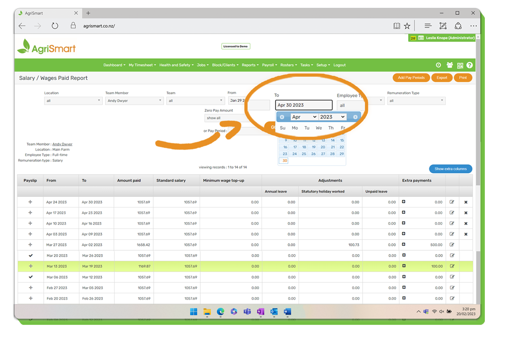 11. Adjust the ‘To Date’ to the date you entered in the previous step e.g. 30/04/2023: